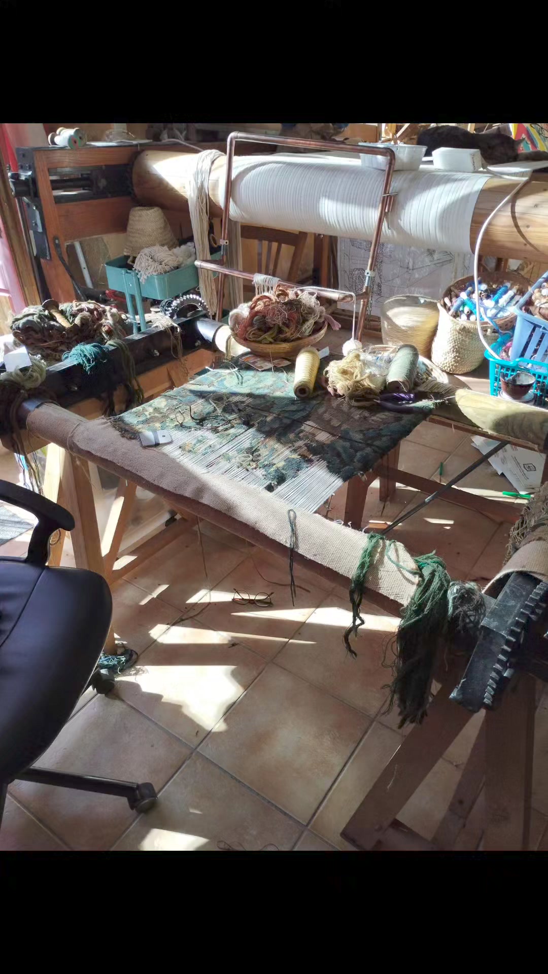 Mes tapisseries sont des pièces unique, des oeuvres à part entières.J'aime jouer avec les techniques et les matériaux qui peuvent être des fibres, du métal, du caoutchouc... Tout ce qui est relativement souple peut être tissable.
