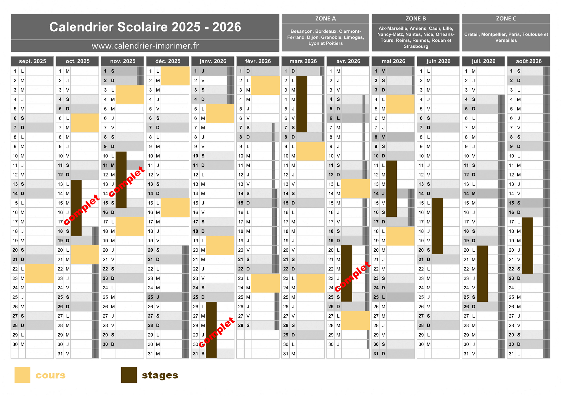 - Sur RDV stage we ou semaine de 1 à 2 jours =